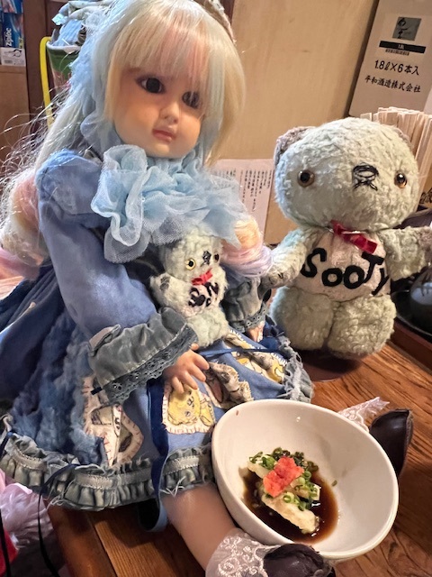 作家さんは川原の「守護」を祈るクマ「抱き熊スーティー」をくれました。ラスプーチンと命名し、お花見もしました。