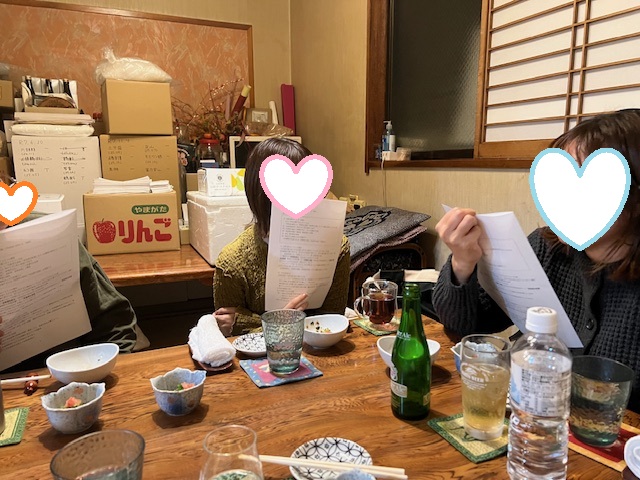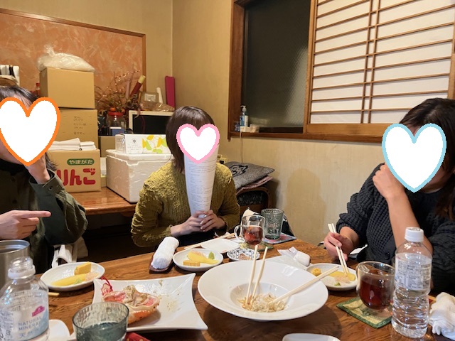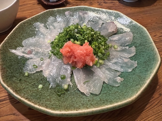 …を兼ねて飲み会。下は、カワハギの薄造り。