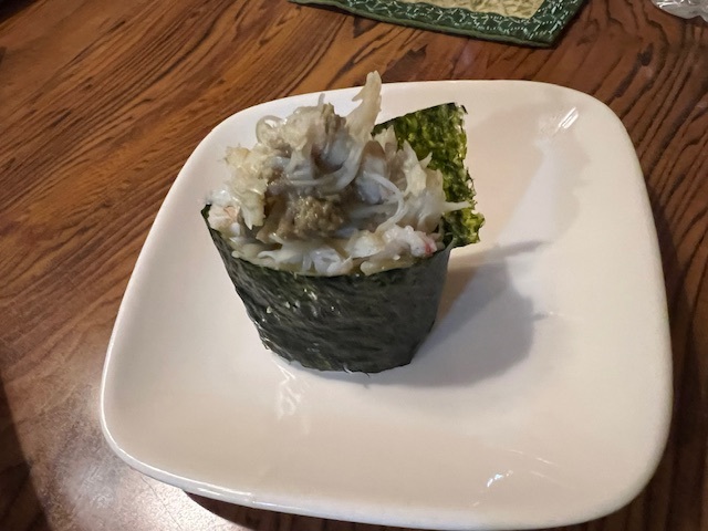 軍艦だけをもらって自分で乗せて食べたりします。これは徳田さんに作ってもらったかに味噌多め。