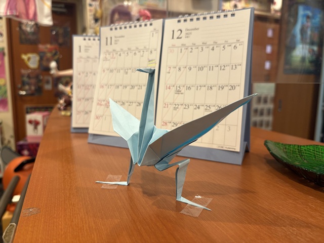 16日 紙の記念日 鶴を折ってみました。 最近は足の生えた鶴の折り方があるんですね(笑)